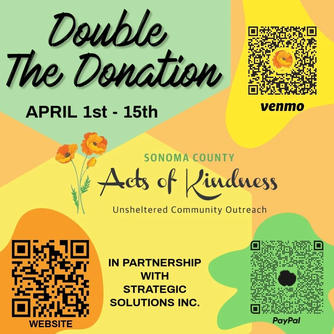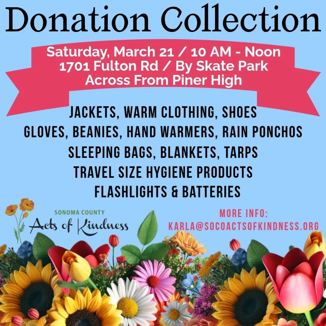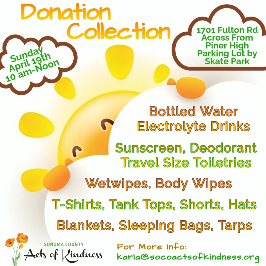 Sonoma County Acts of Kindness prepares and distributes meals seven days a week to unhoused people living on the streets, mainly throughout Santa Rosa. We host monthly donation collection events and deliver supplies once a week. We also host large holiday events for Thanksgiving and Christmas.